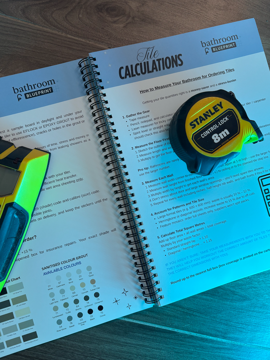 A premium, beautifully bound guide you’ll keep on your benchtop during the entire renovation. Your step-by-step roadmap in your hands, ready when you need it. - Bathroom Blueprint – eBook (Digital Version, Instant Access)